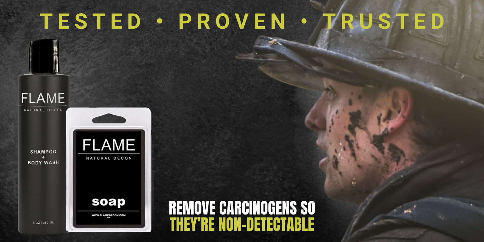 That's where FLAME comes in. Scientifically formulated with our proprietary blend of activated charcoal to remove all sizes of toxins. Our products have been field tested and lab proven to remove toxins so they're no longer detectable on your skin.